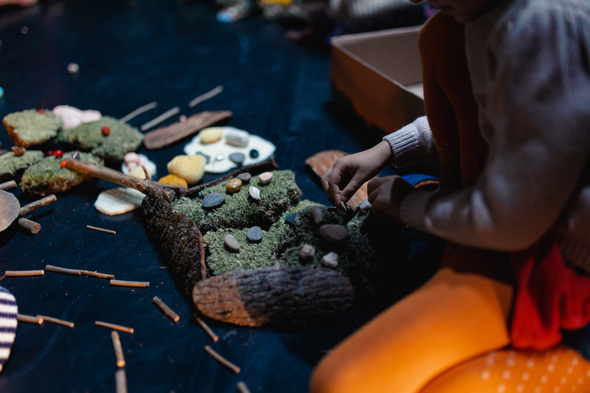 Description of the work: Our earth is full of worlds within worlds. Each of these microworlds lives its own unique life. Through micro-movements, body landscape, and small objects the performance focuses on tiny things in plain sight that are often overlooked. Set against the backdrop of a frantic and vast world, viewers are invited to start appreciating small and vulnerable everyday things again. This playful and poetic performance explores the fragility of our existence, charming both adults and young audiences alike.