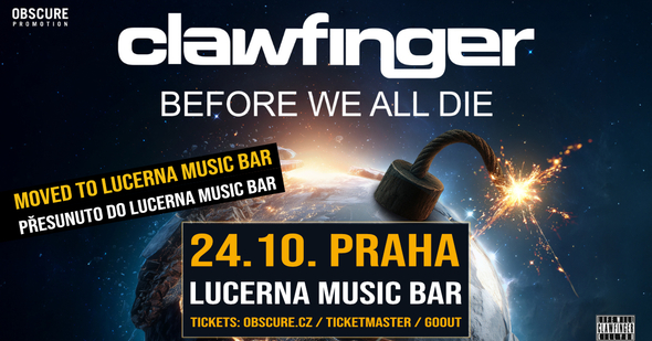 Please allow us to inform you that due to high demand, we are moving the Clawfinger concert from Palác Akropolis to Lucerna Music Bar.